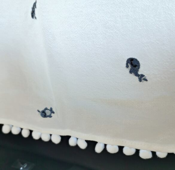 海外製品のお洋服は、日本生産の商品に比べて縫製や裏の始末が荒い場合があり、ボタンやモチーフの縫い付けが不十分な場合がございます。